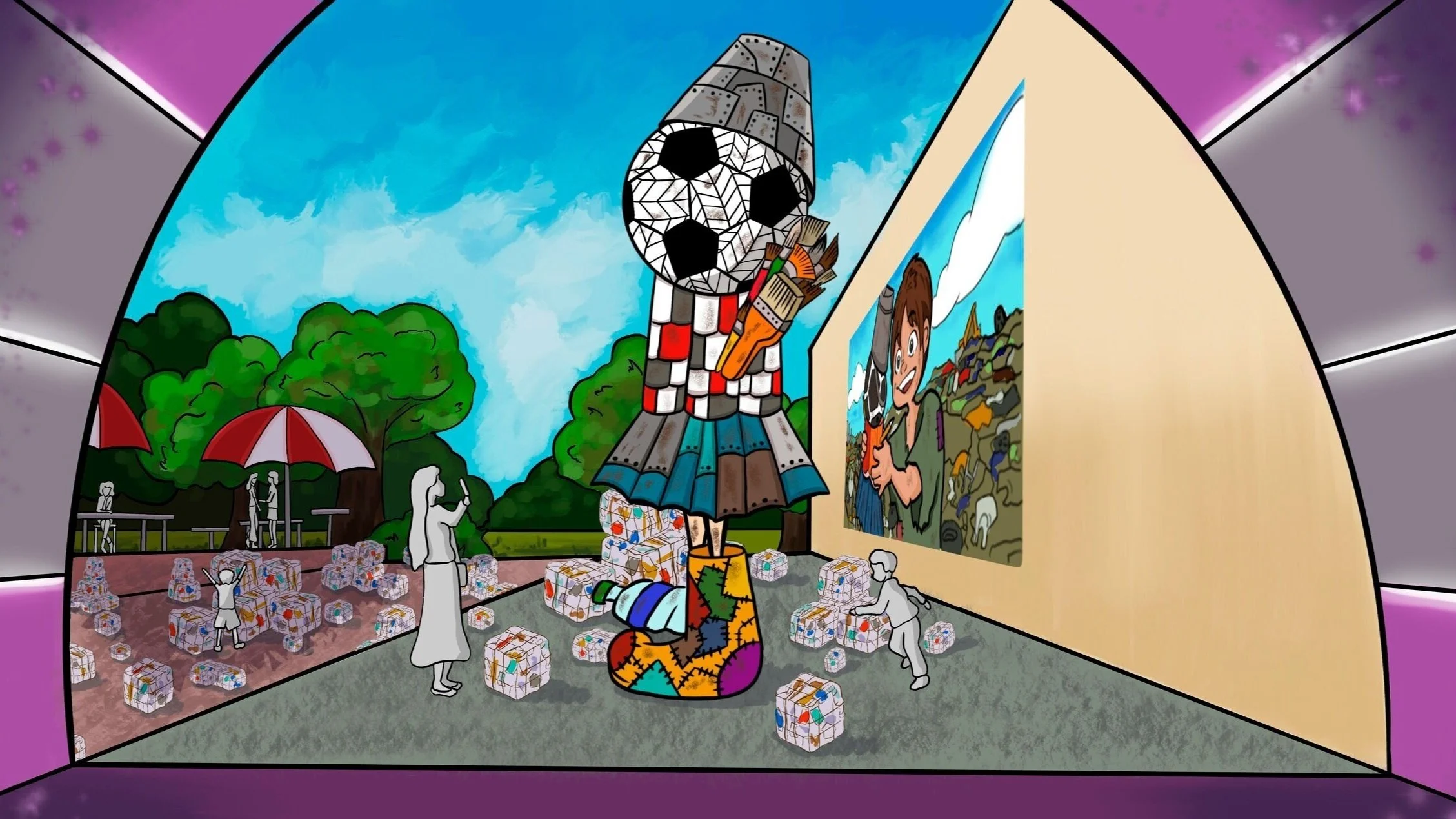 In the group of two, my teammate and I created an iconic installation on the campus that serves as an inspiration, honors the past, and is a vision of the future. I participated as the team leader and contributed to concept art and layout design.